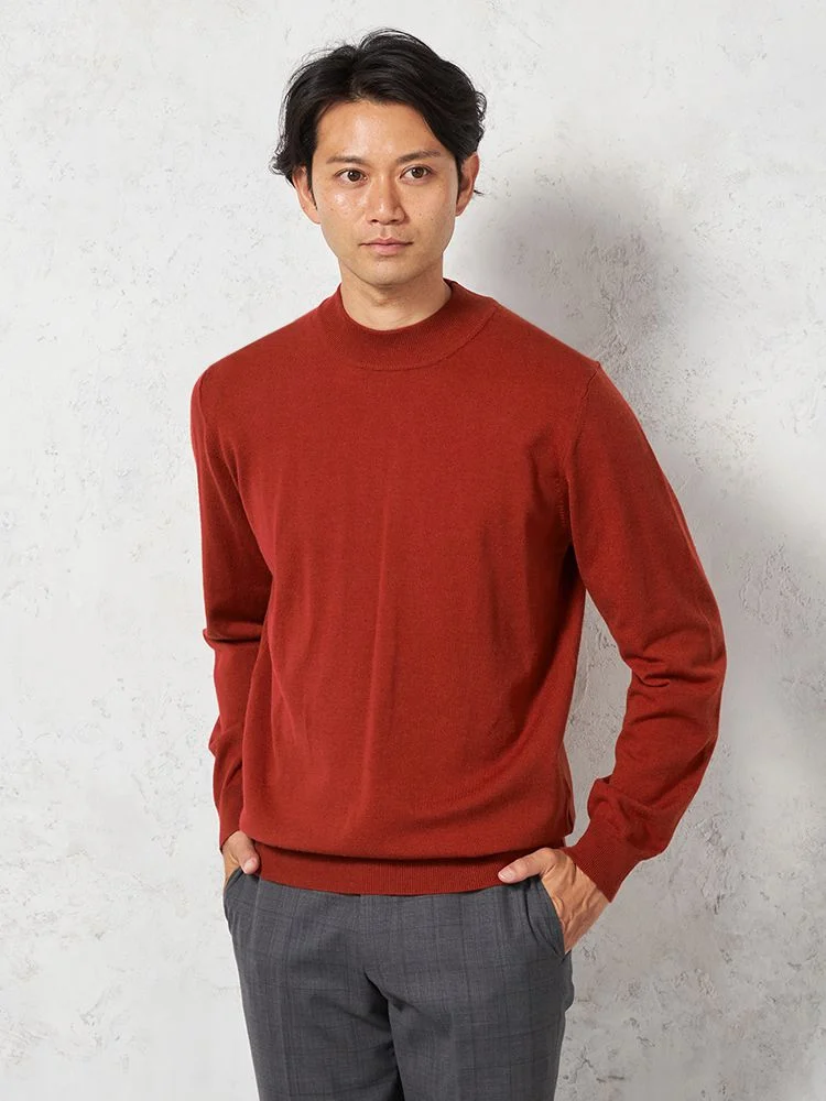 【リッケンバッカー】 無地天竺モックネックセーター カジュアルインナー ニット 長袖 保温 秋冬