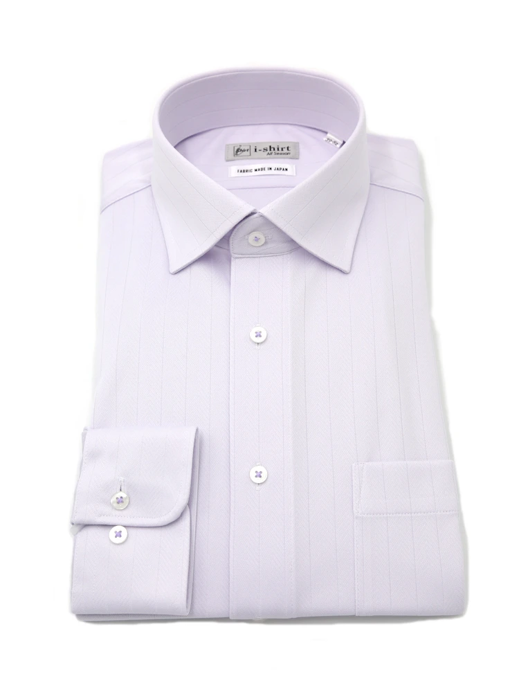 【完全ノーアイロン】長袖アイシャツセミワイドストレッチ防汚加工織柄無地ワイシャツi-shirt通年