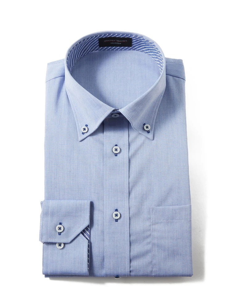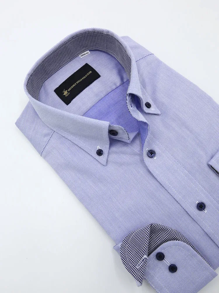 【形態安定】長袖ワイシャツ ボタンダウン 別布 S.ブルー 織柄無地 ビバリーヒルズポロクラブ 通年