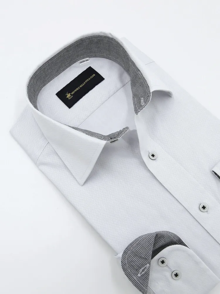【形態安定】長袖ワイシャツ セミワイド 別布 L.グレー 織柄無地 ビバリーヒルズポロクラブ 通年