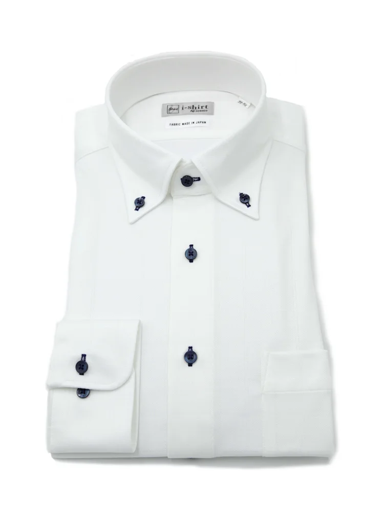 【完全ノーアイロン】長袖アイシャツボタンダウン吸水速乾ストレッチダイヤ織柄無地ワイシャツi-shirt通年