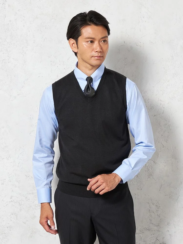【ウォッシャブル】ミラノリブ前割れベスト放電抗ピリング無地ベストリッケンバッカー秋冬