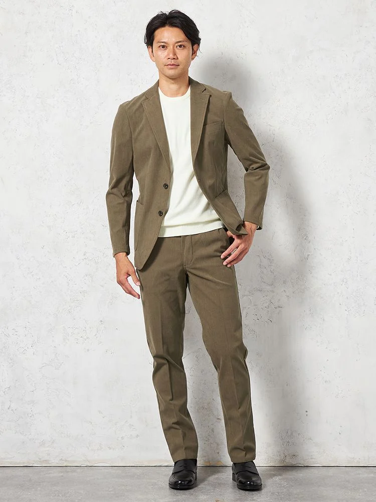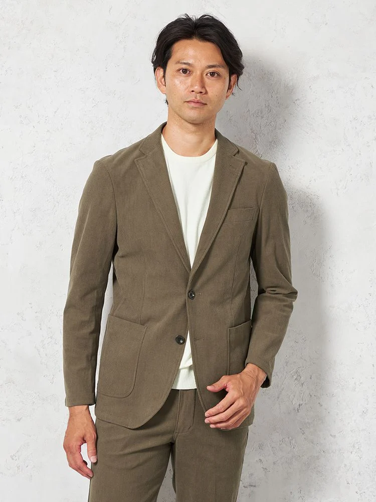 ニットコーデュロイという特殊な素材を開発。軽量で360度伸縮性があり快適な着心地。。