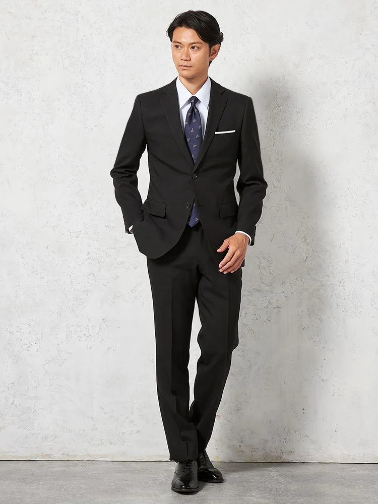 【即納】スーツ 2つボタン【WEB限定】4WAYストレッチ 織柄 ブラック 通年