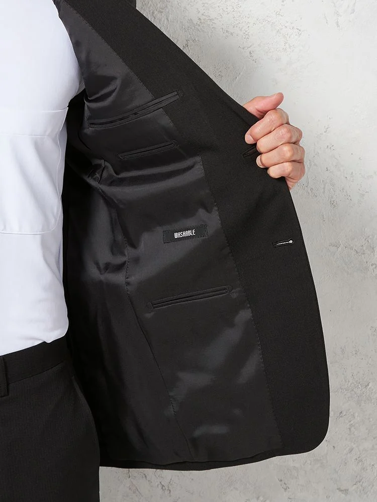 【即納】【WEB限定】スーツ2つボタンブラックシャドウストライプ上下ウォッシャブル3シーズン対応