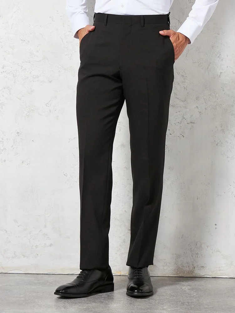 パンツの腰回りに生地の折り込みがなく、スッキリとしたシルエットを実現します。シンプルで洗練された印象を与え、すっきりとした着こなしが可能です。
