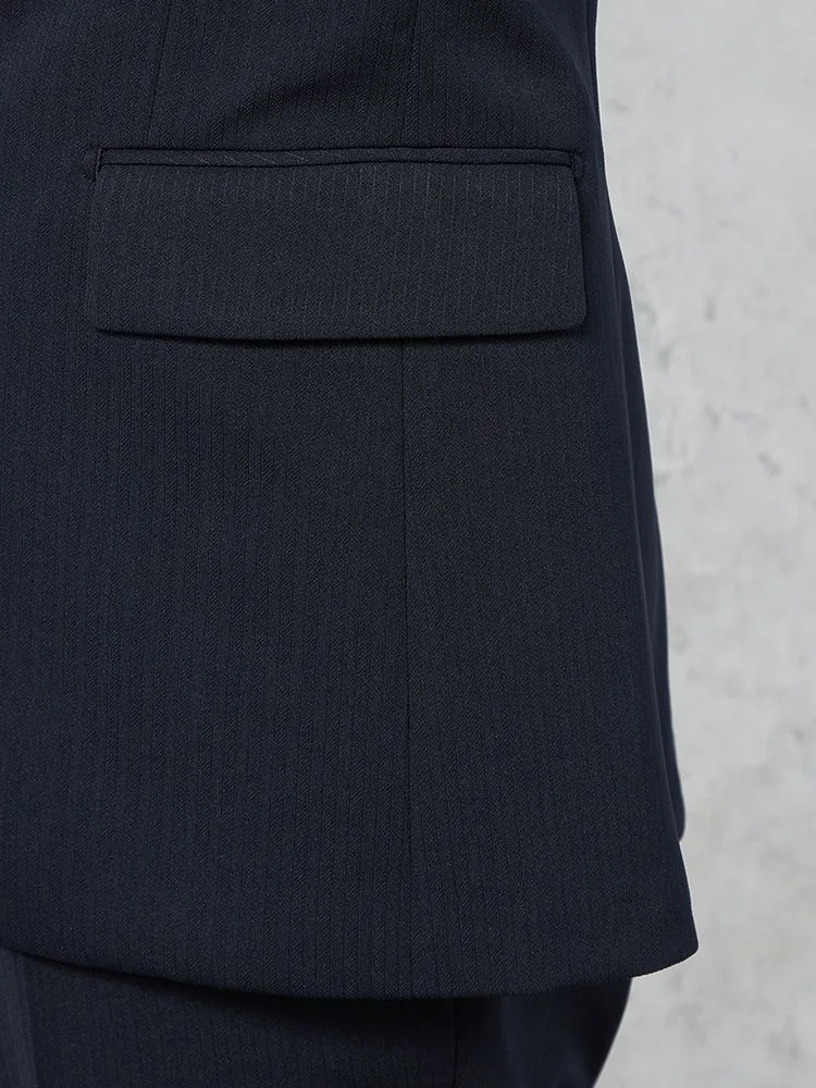 切り込みが1本のセンターベントデザインです。細身でスッキリとしたシルエットが特徴で、快適な着心地を提供します