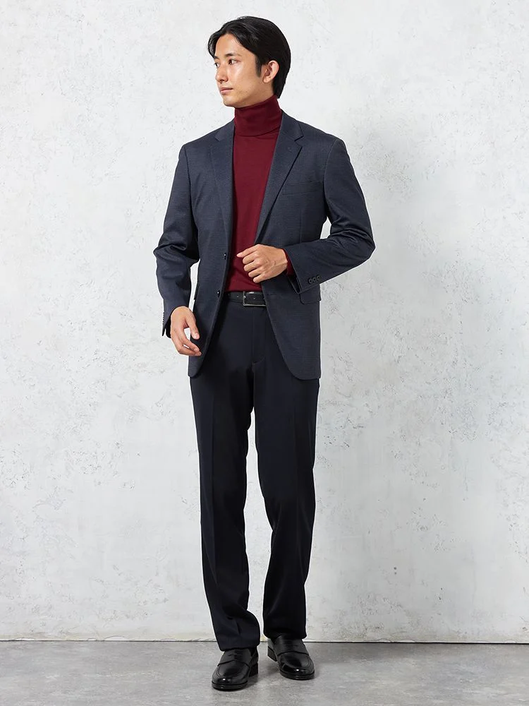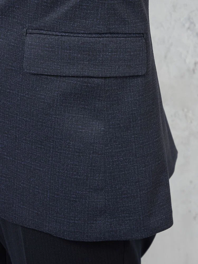 切り込みが1本のセンターベントデザインです。細身でスッキリとしたシルエットが特徴で、快適な着心地を提供します