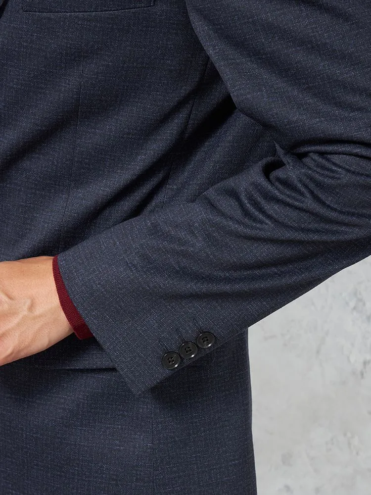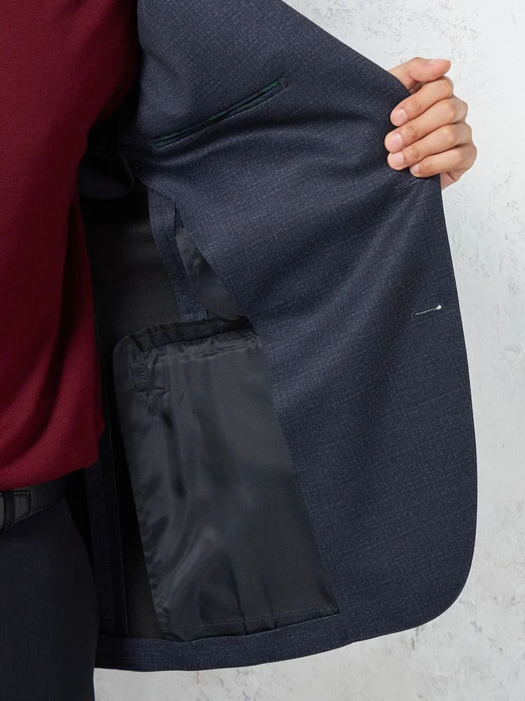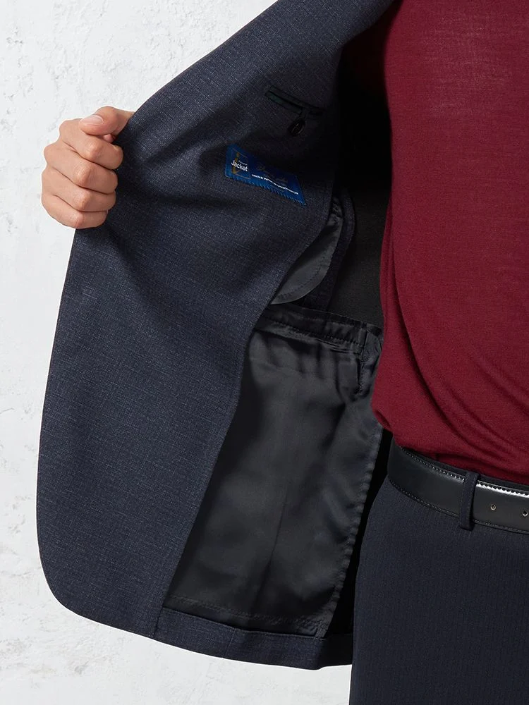 【軽量】プリントニット ジャケット 2つボタン ウォッシャブル ストレッチ ネイビー 小格子 【i-Jacket-アイジャケット-】 秋冬