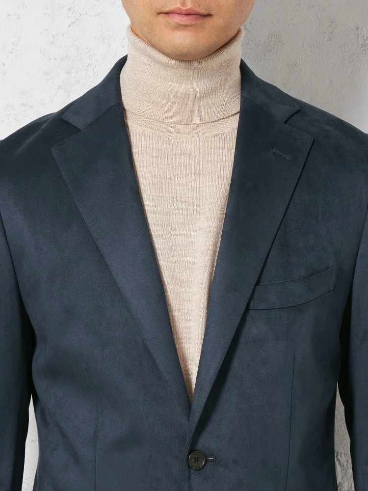スウェード調のニット素材で仕立てた、雰囲気のある2つボタンジャケットです。