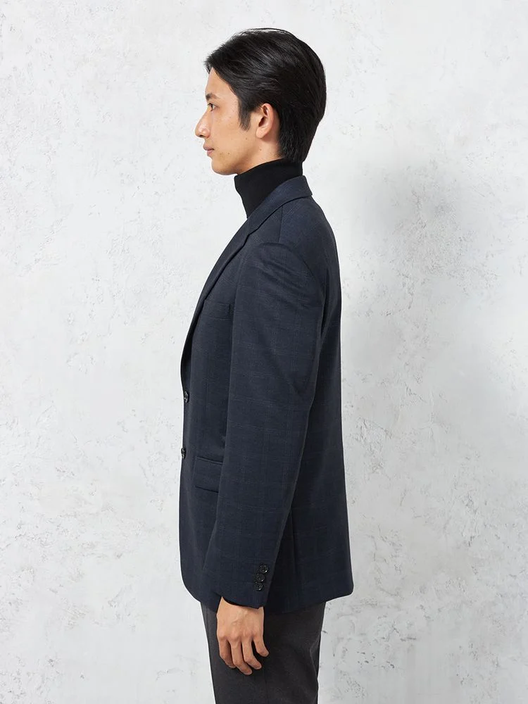 【抗ピリング】ジャケット 2つボタン【i-Jacket-アイジャケット-】ストレッチ ウォッシャブル チェック ネイビー 秋冬