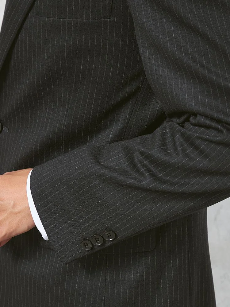 【即納】【WEB限定】スーツ2つボタンブラックシャドウストライプ上下ウォッシャブル3シーズン対応