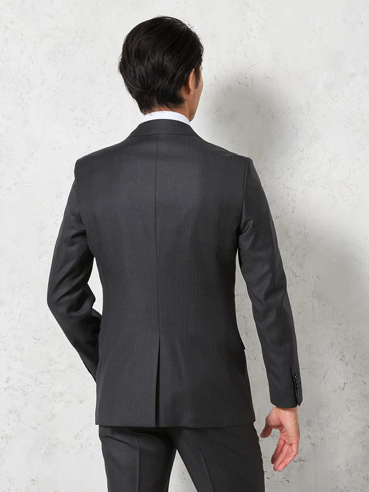 切り込みが1本のセンターベントデザインです。細身でスッキリとしたシルエットが特徴で、快適な着心地を提供します
