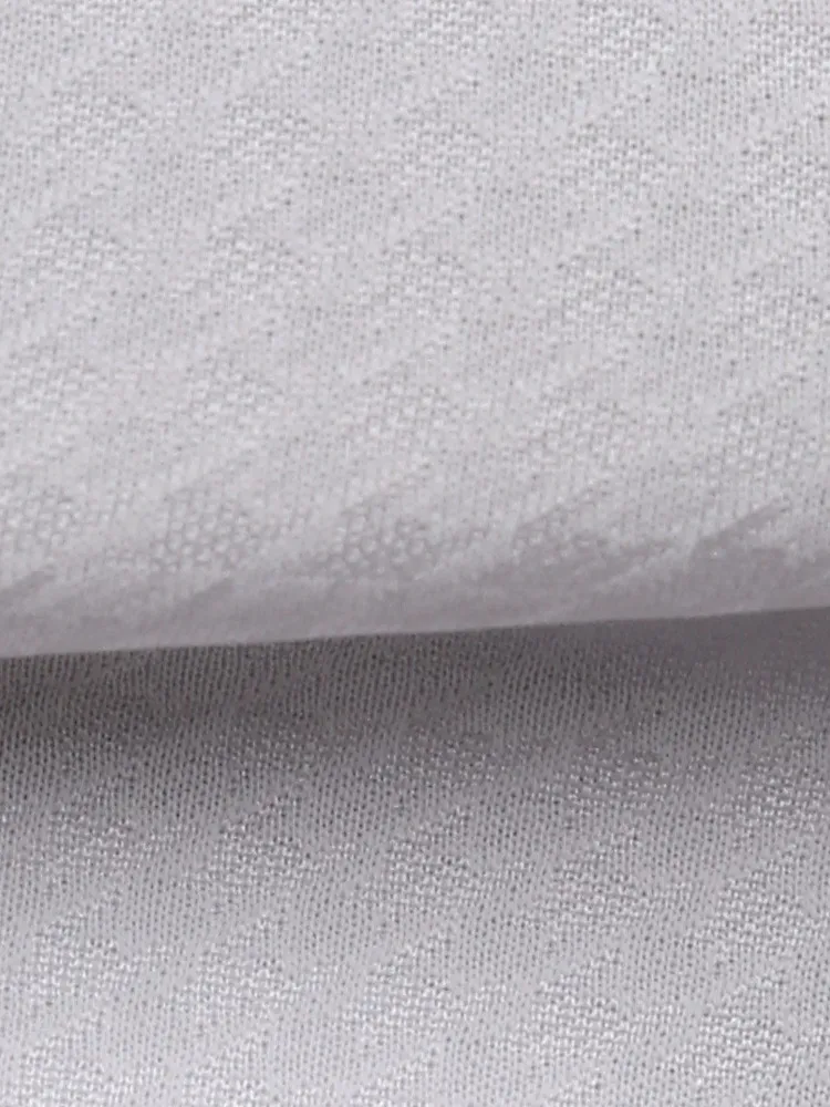 こだわりの日本製生地はソフトなポリエステルニットで、スポーツウェア等にも使われる高機能素材。体の動きに合わせて生地が伸び縮みする高いストレッチ性が特徴で、動作時の負荷が少なく着用ストレスも軽減します。