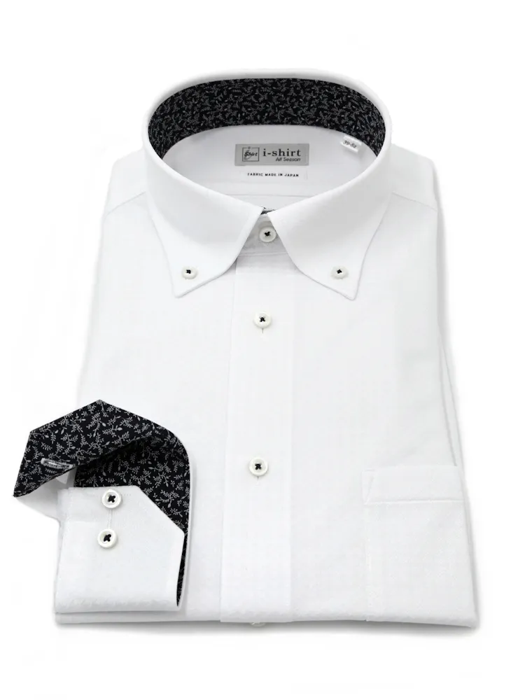 【完全ノーアイロン】長袖 アイシャツ ボタンダウン 千鳥格子 ストレッチ 吸汗速乾 ワイシャツ i-shirt 通年(ホワイト)