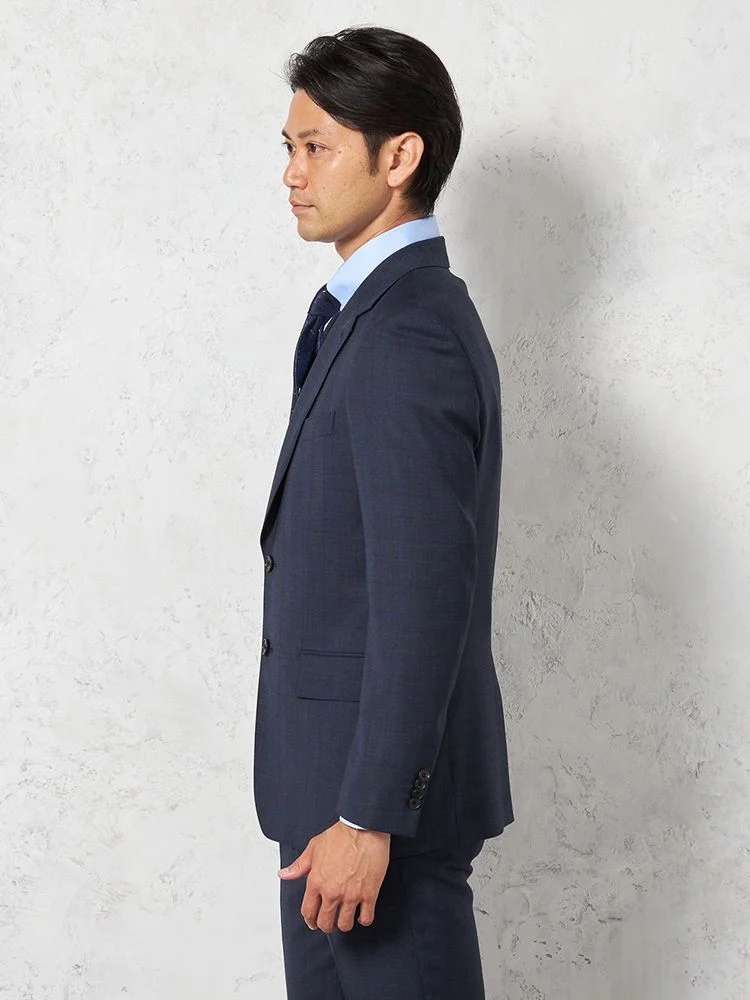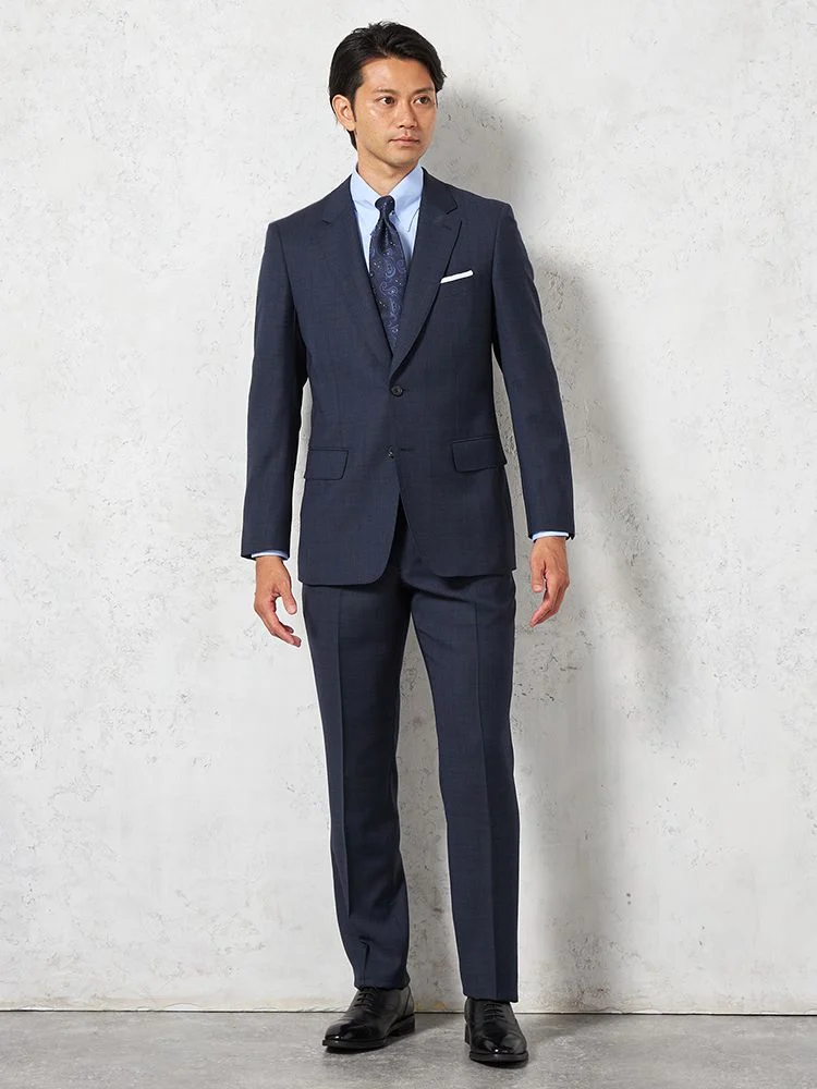 【ウール100%】スーツ 2つボタン イタリアインポート素材 ネイビー チェック リッケンバッカー 秋冬