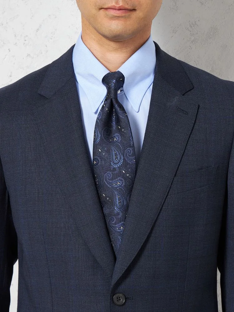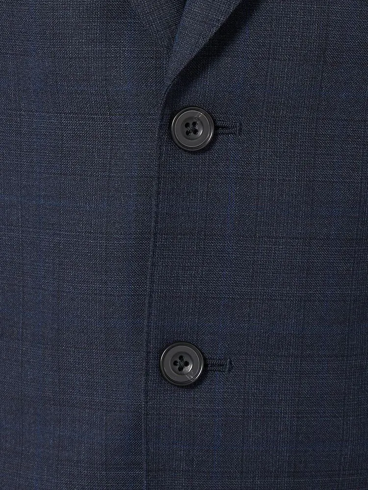 【ウール混】スーツ 2つボタン イタリア製生地 ネイビー チェック リッケンバッカーホワイト