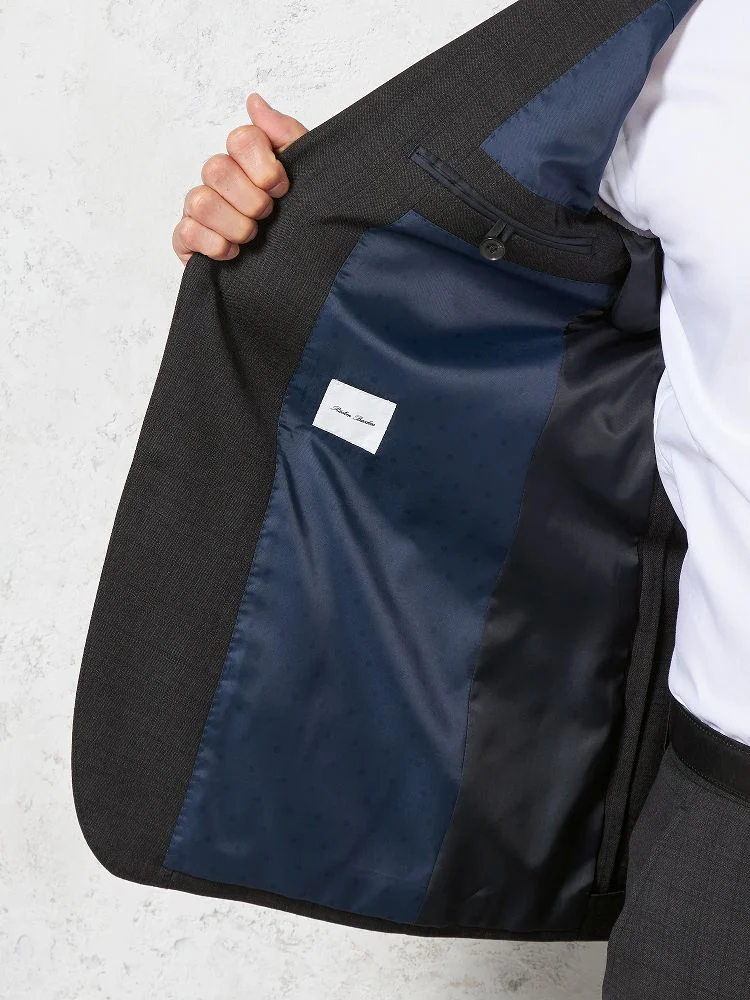落ち着いた雰囲気のチャコールグレーにさりげなくチェック柄がデザインされ、トラッド感が加わっています。