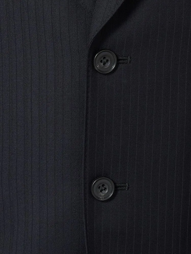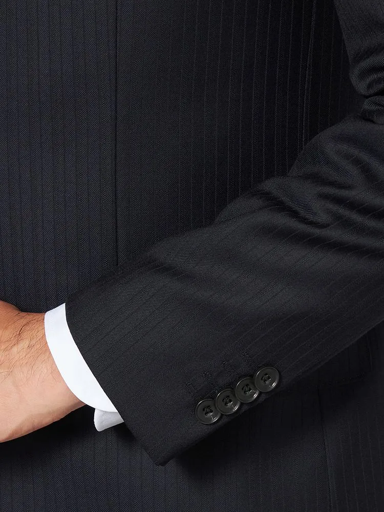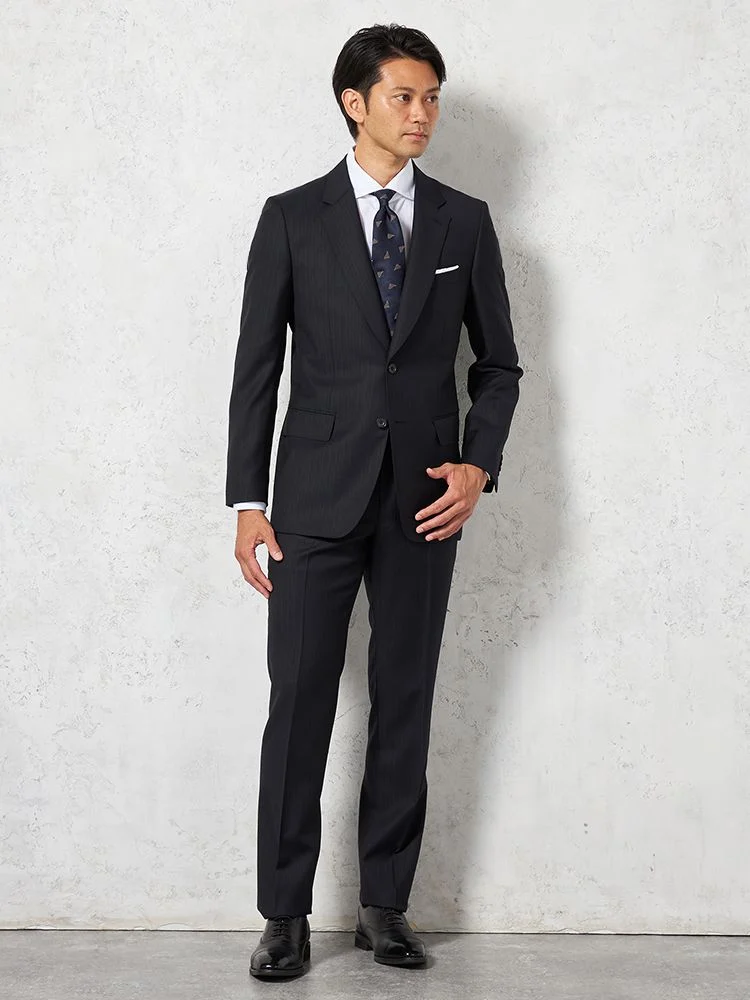 【ウール100%】スーツ 2つボタン イタリア製生地 ブラック シャドウストライプ リッケンバッカーホワイト
