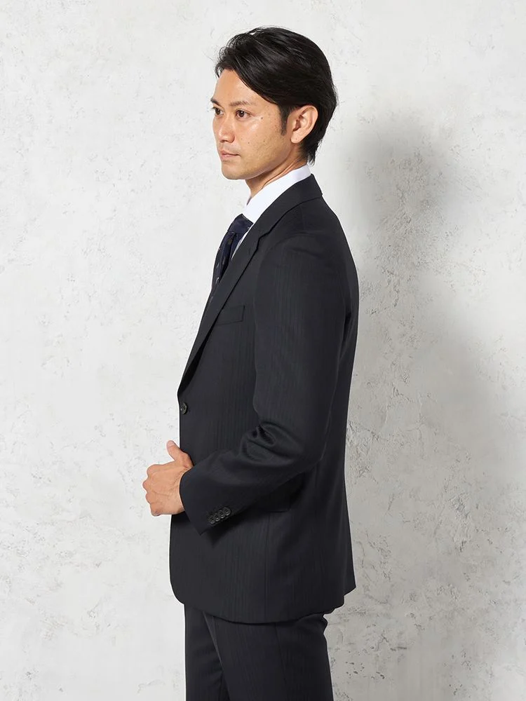【即納】【WEB限定】スーツ2つボタンネイビーシャドウストライプ上下ウォッシャブル3シーズン対応