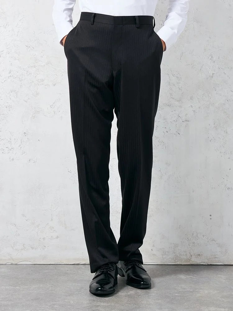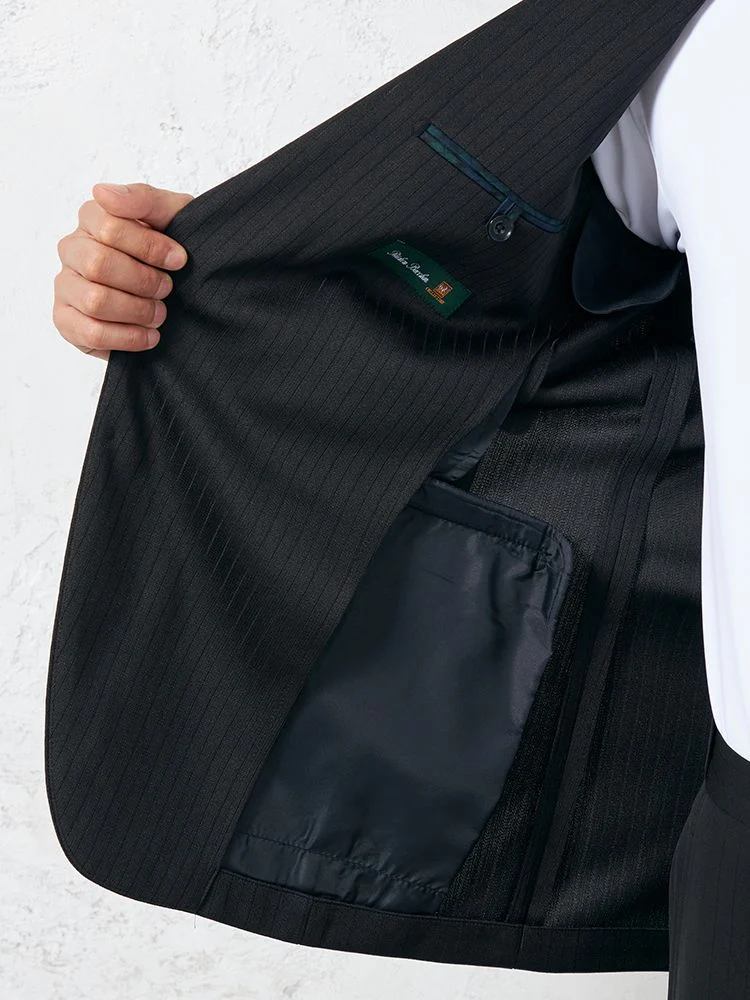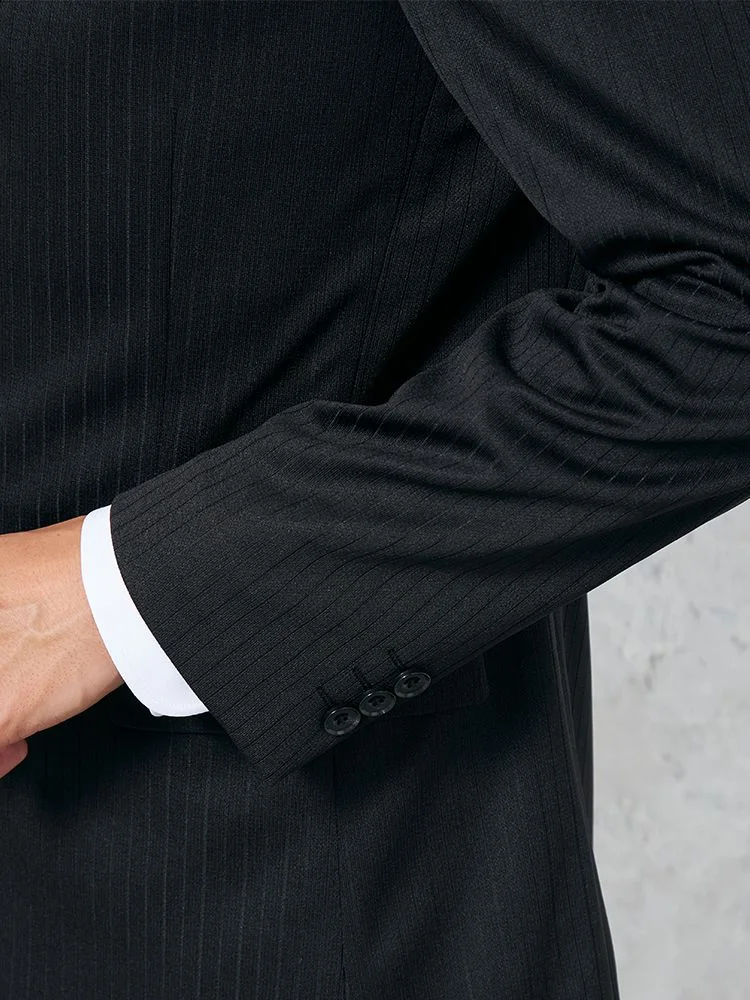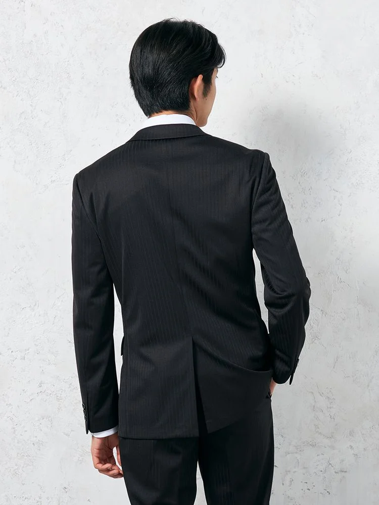 【即納】【WEB限定】スーツ2つボタンブラックシャドウストライプ上下ウォッシャブル3シーズン対応