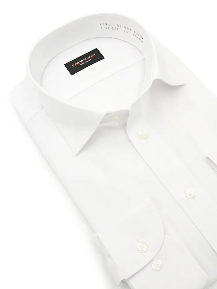 【形態安定】長袖 ワイシャツ セミワイドカラー ツイル柄【スリム】【フレッシャーズにもおすすめ】nero 通年【スリムデザイン】