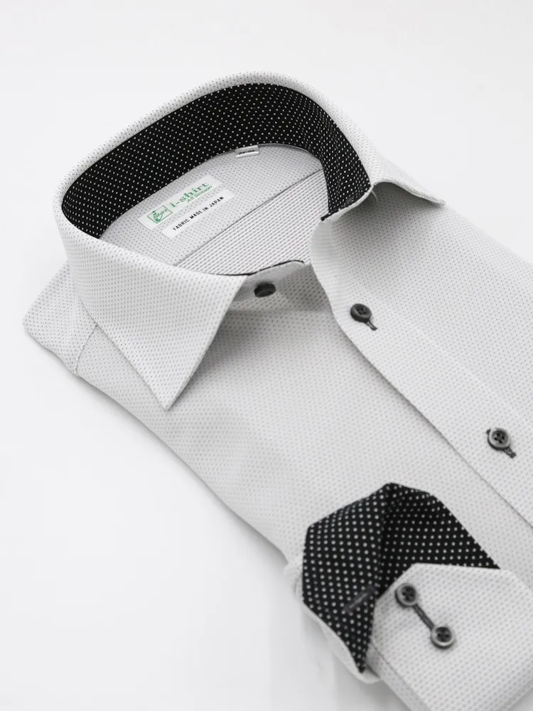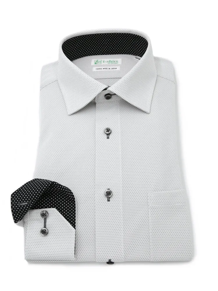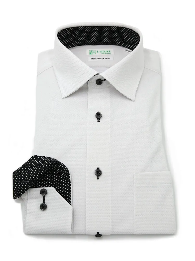 【ハイブリッドアイシャツ】長袖ワイシャツセミワイド綿混素材形態安定織柄無地i-shirt通年