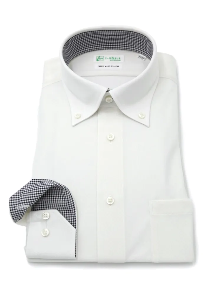 【即納】WEB限定【完全ノーアイロン】長袖アイシャツボタンダウンストレッチロンビック柄i-shirt通年