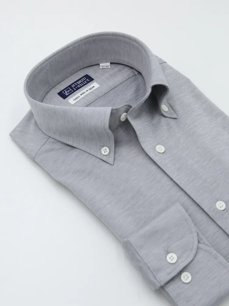 綿混素材にすることで、適度な艶とハリコシ感、綺麗なドレープ感をあわせもつ新しいニットシャツに仕上げました。