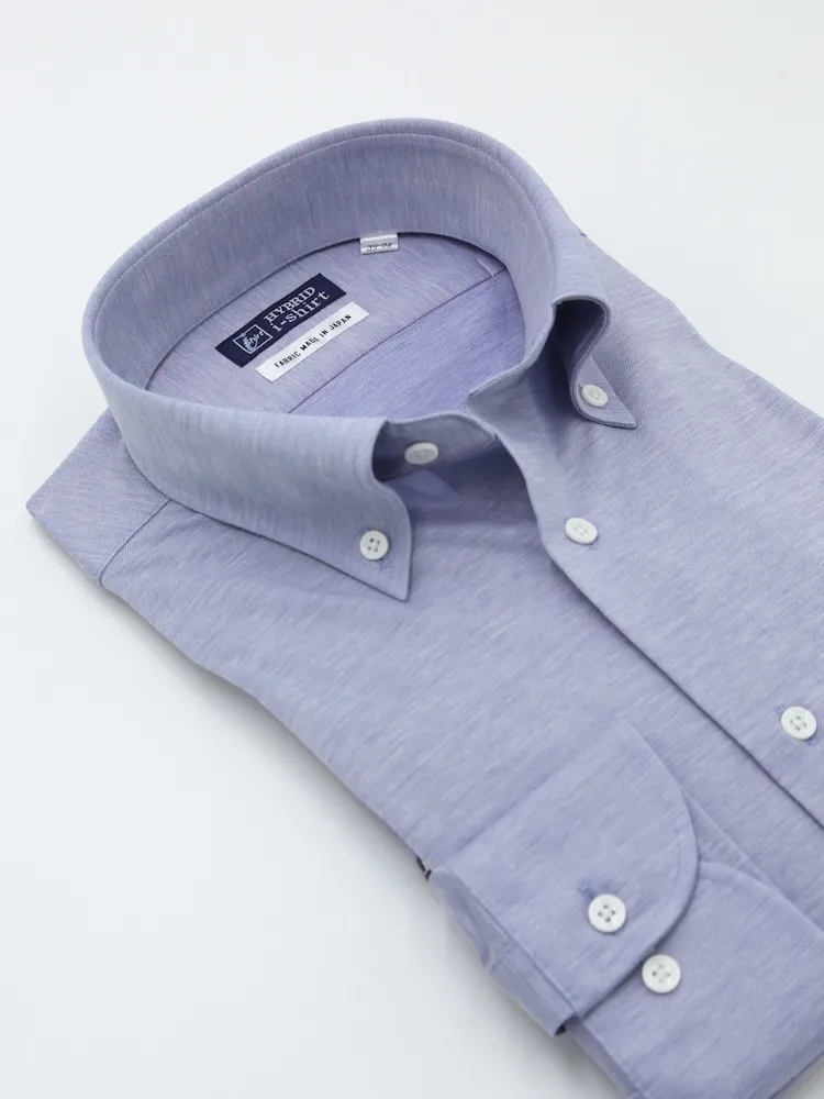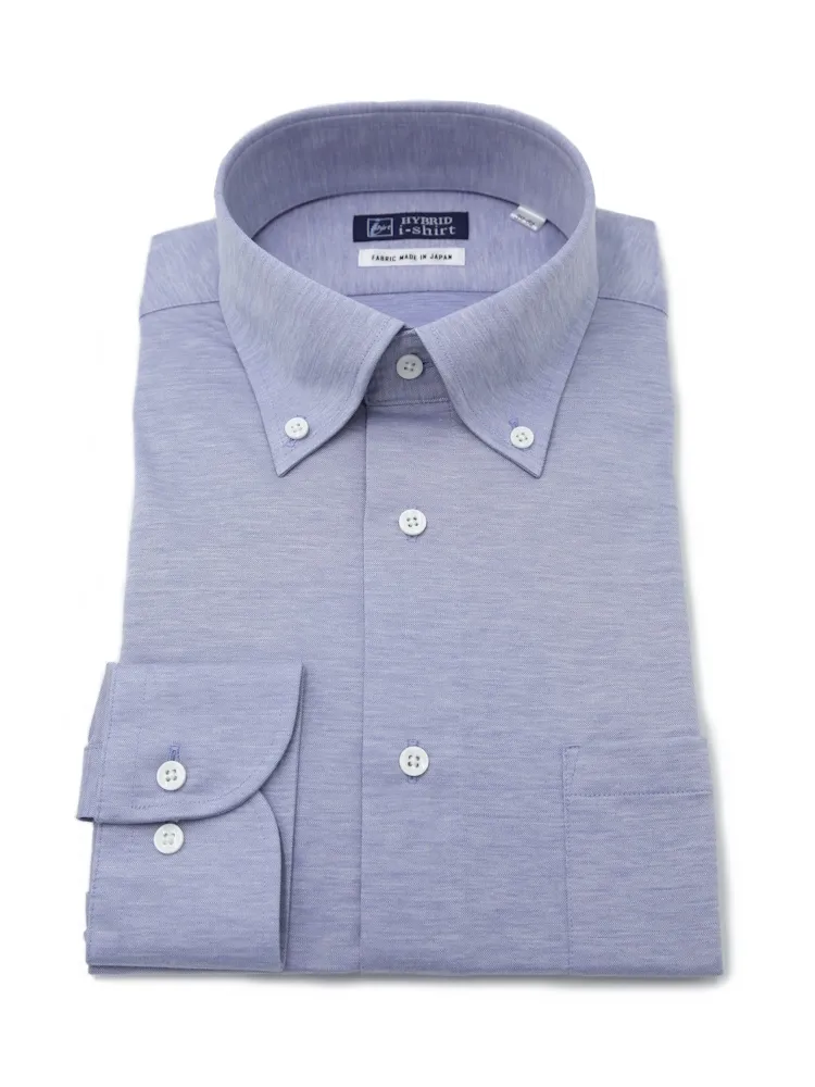 【ハイブリッドアイシャツ】長袖 ワイシャツ ボタンダウン 綿混素材 形態安定 無地 i-shirt 通年(ネイビー)