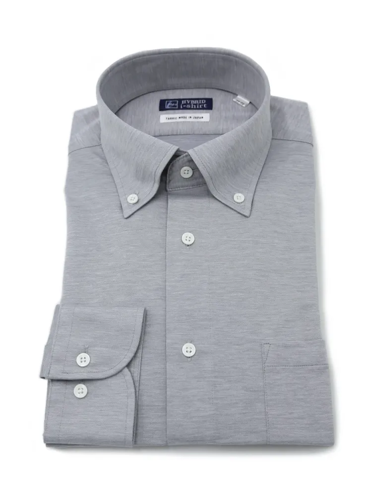 【ハイブリッドアイシャツ】長袖ワイシャツボタンダウン綿混素材形態安定千鳥i-shirt通年