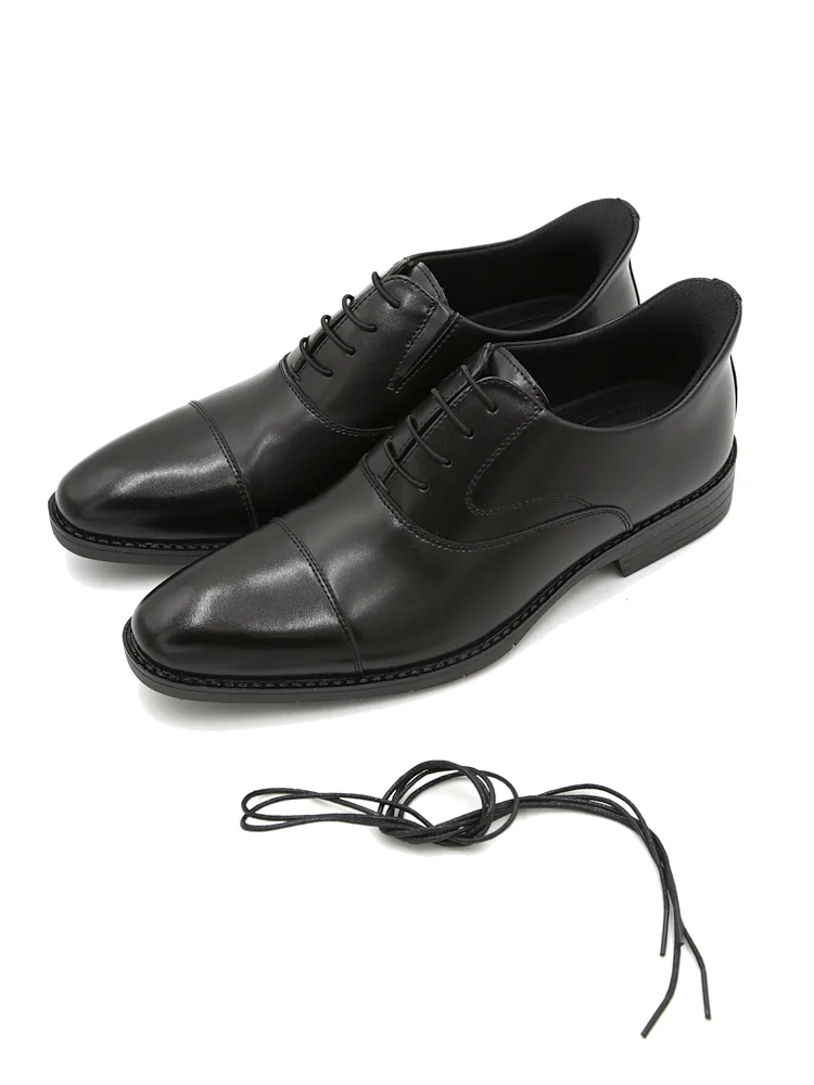 【SLIP-EASY-スリップイージー】シューズ 内羽根 ストレートチップ 脱ぎ履き簡単 替紐付き 革靴 I.B.S 通年(ブラック)