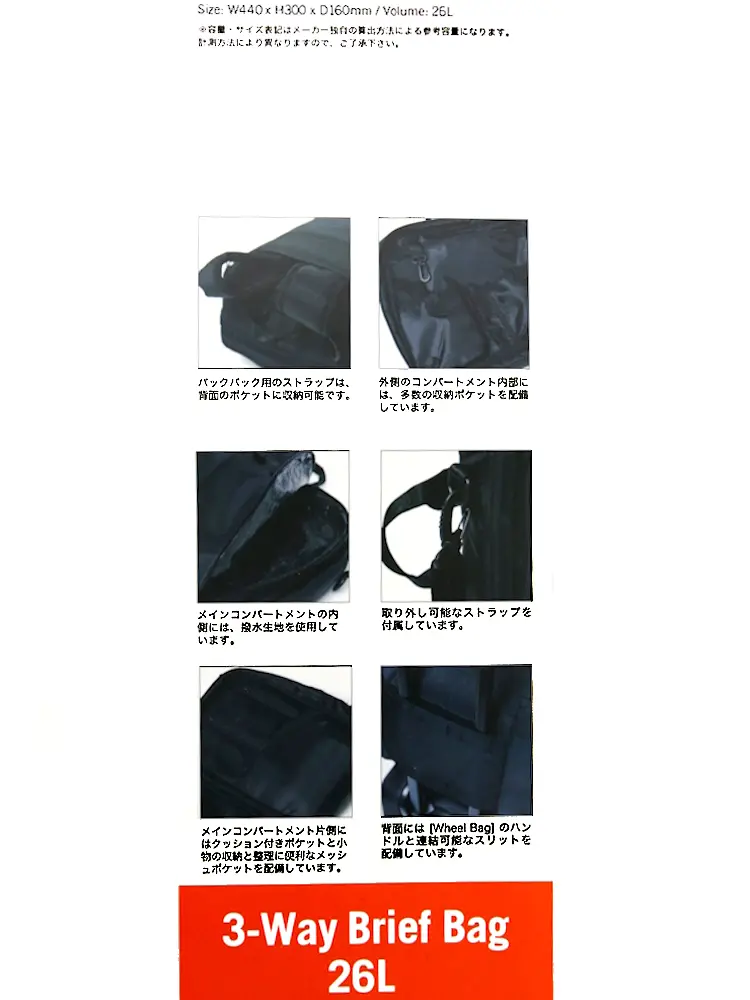 ブリーフバッグ、バックパック、ショルダーバッグの3パターンでの使用が可能です。