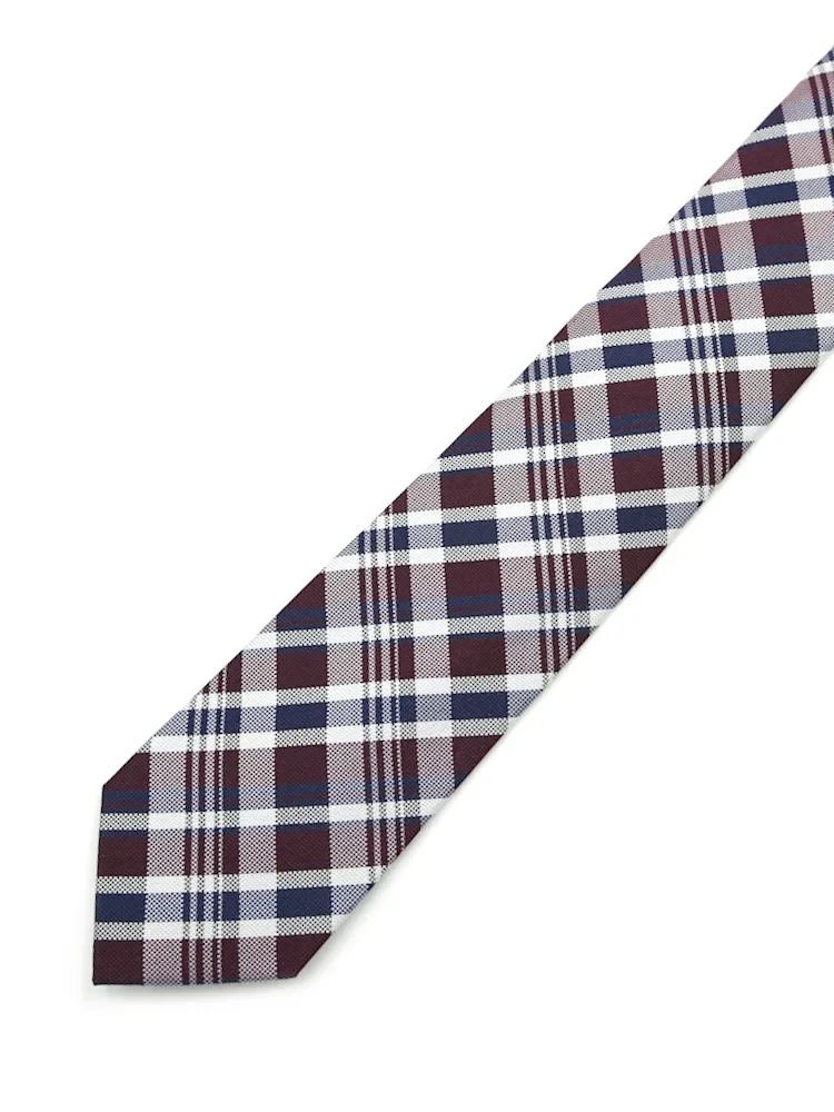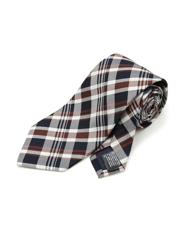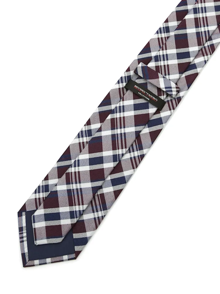 【シルク100%】ネクタイ レギュラー チェック nero【フレッシャーズにもおすすめ】(ワイン)