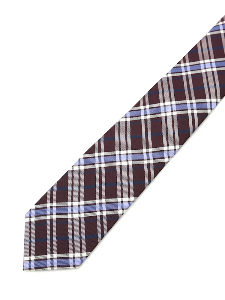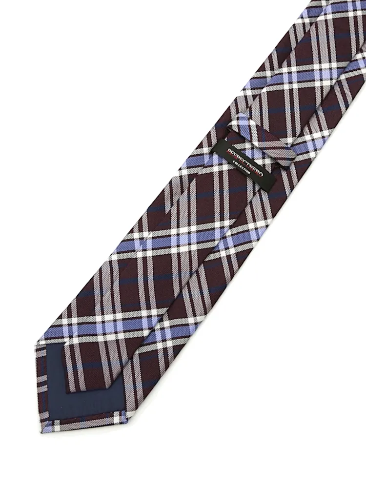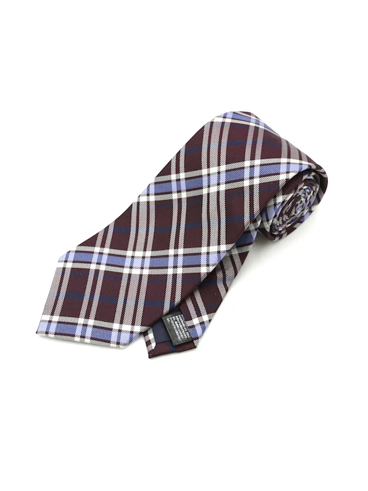 【シルク100%】ネクタイ レギュラー チェック nero【フレッシャーズにもおすすめ】(ワイン)