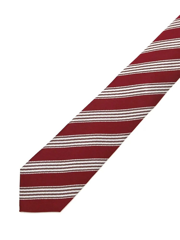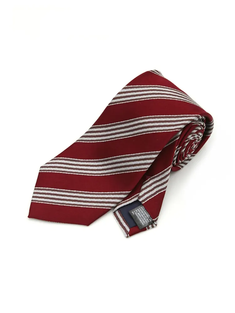 【シルク100%】ネクタイ レギュラー ストライプ nero【フレッシャーズにもおすすめ】(ワイン)