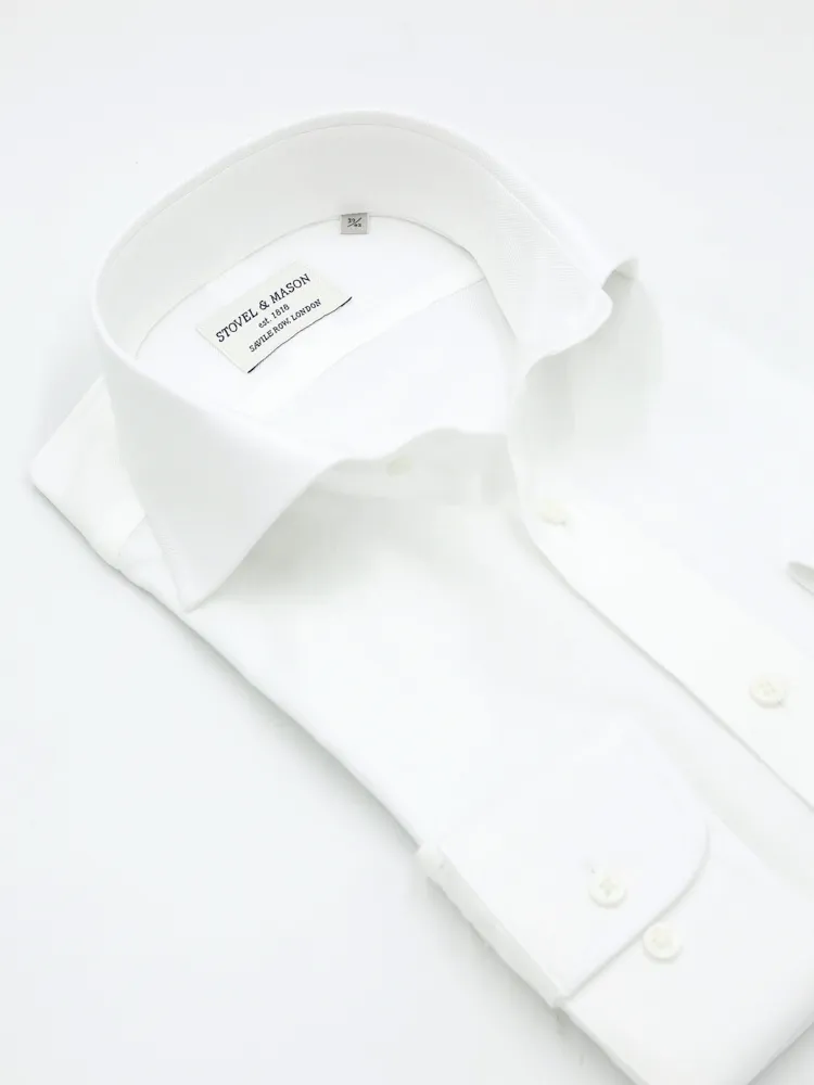 【綿×キュプラ】長袖ワイシャツ ワイドカラー キュプラ繊維ベンベルグR素材使用 織柄無地 へリンボン STOVEL&MASON 通年