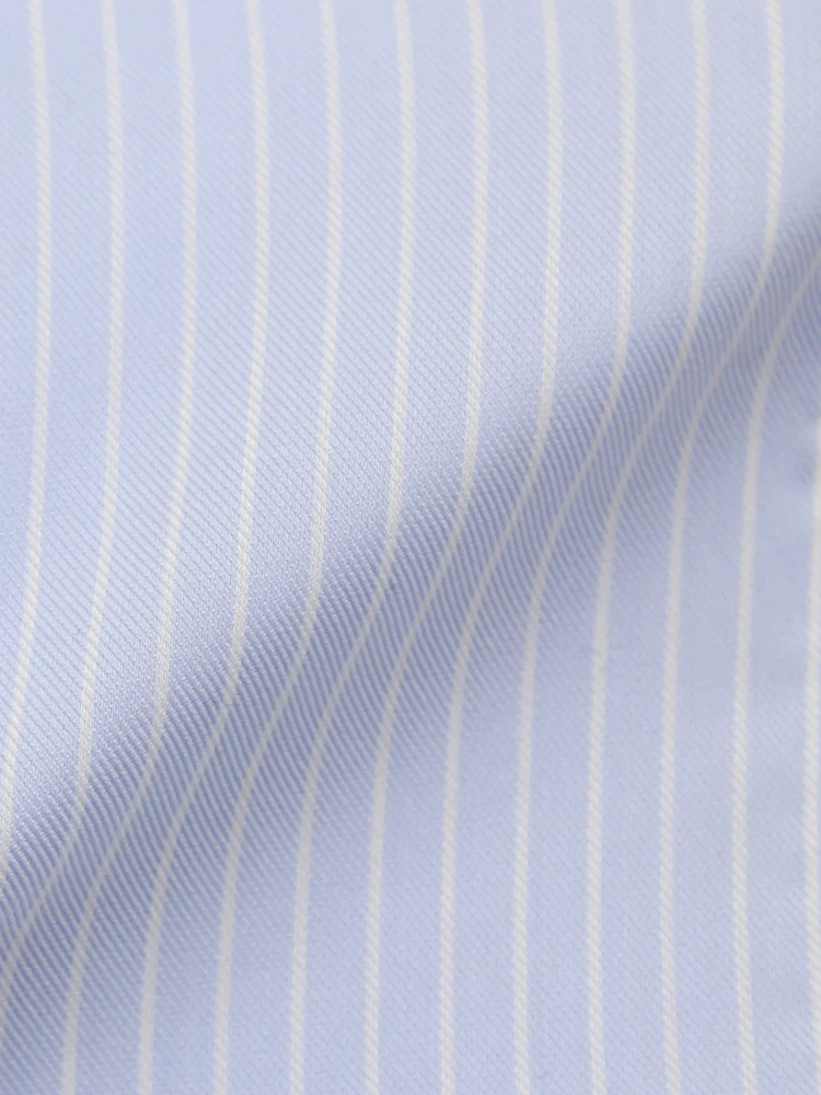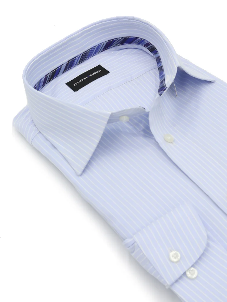 【KATHARINE E HAMNETT-キャサリン・イー・ハムネット-】長袖 ワイシャツ セミワイド サックスストライプ柄 リサイクル素材使用 通年