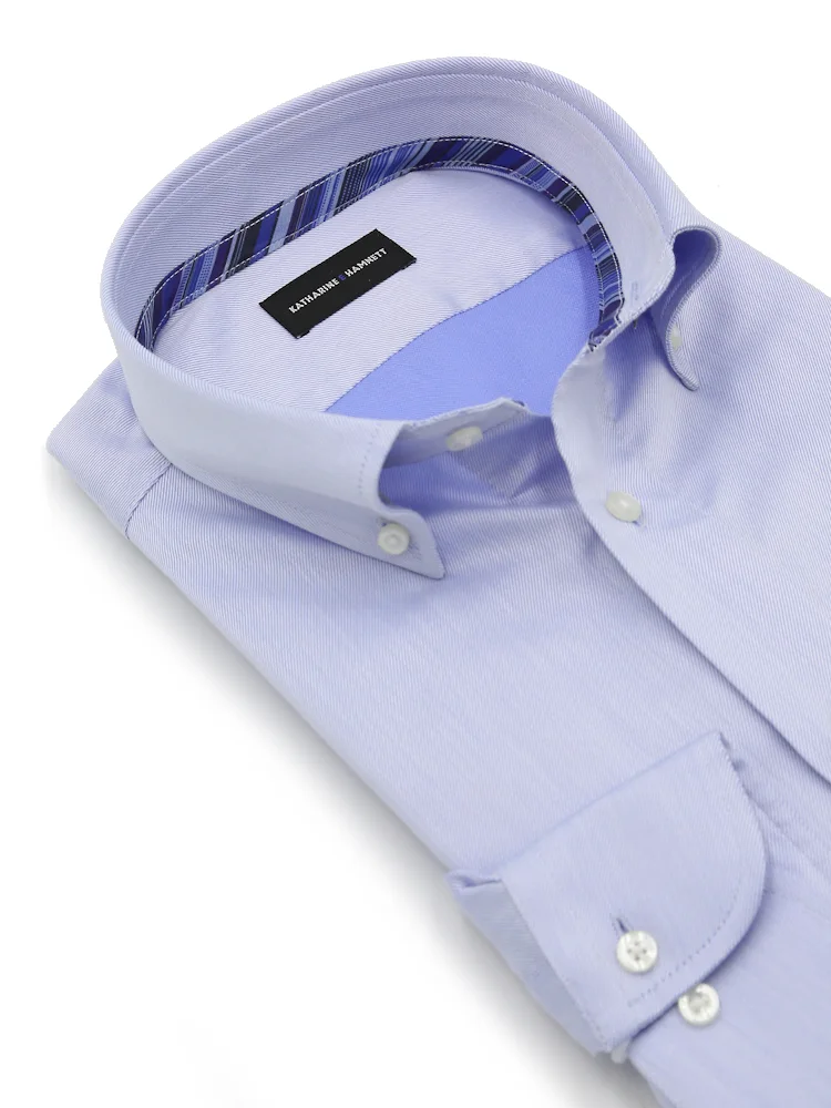 【KATHARINE E HAMNETT-キャサリン・イー・ハムネット-】長袖 ワイシャツ ボタンダウン サックスツイル柄 リサイクル素材使用 通年