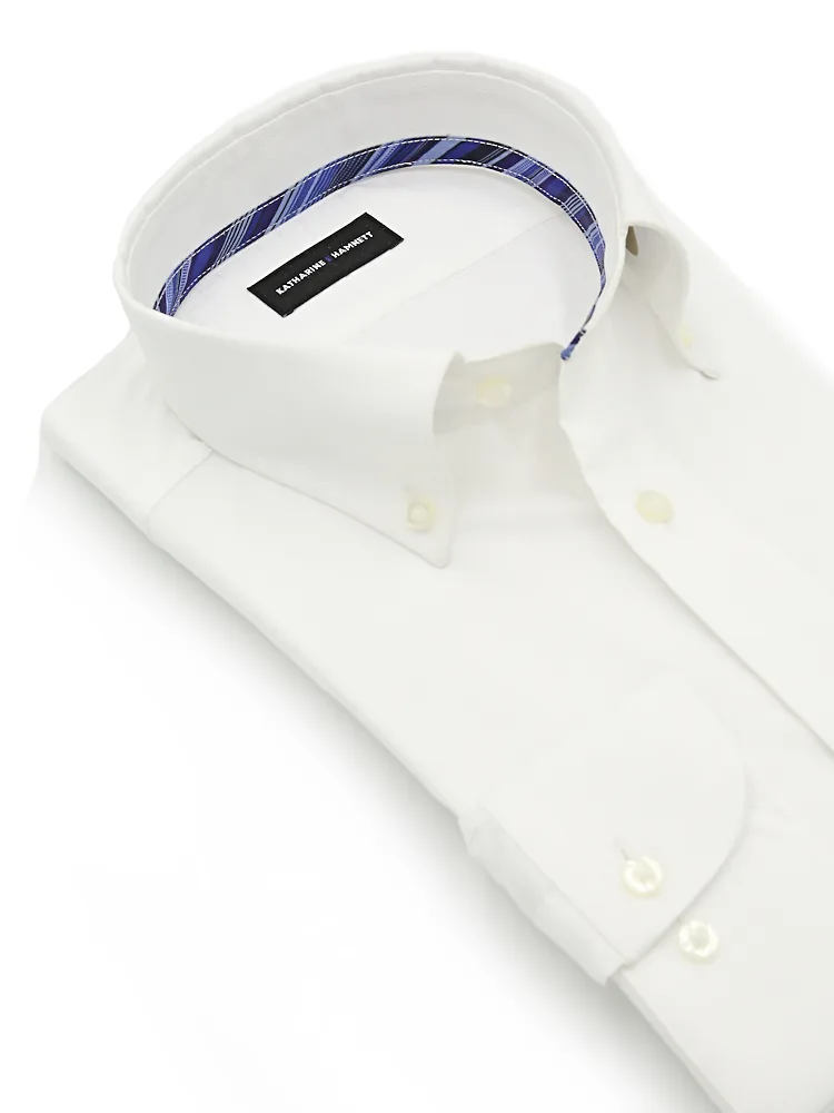 【KATHARINE E HAMNETT-キャサリン・イー・ハムネット-】長袖 ワイシャツ ボタンダウン 白ドビーチェック柄 リサイクル素材使用 通年