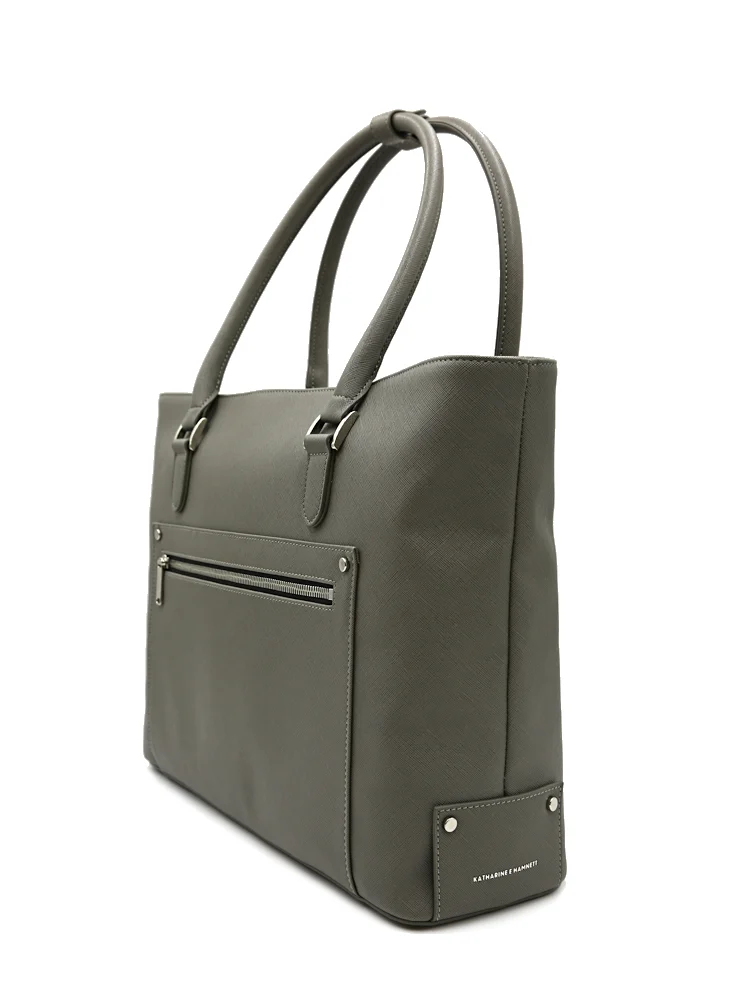 【KATHARINE E HAMNETT-キャサリン・イー・ハムネット-】サフィアーノ調 トートバッグ A4対応 通年(M.グレー)