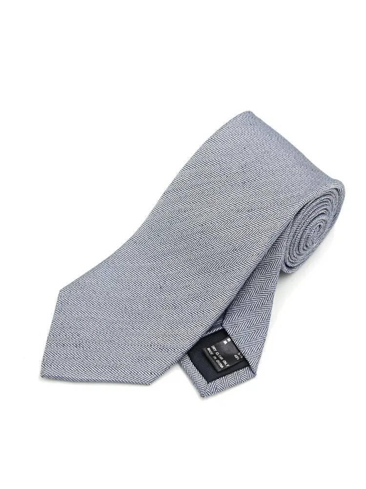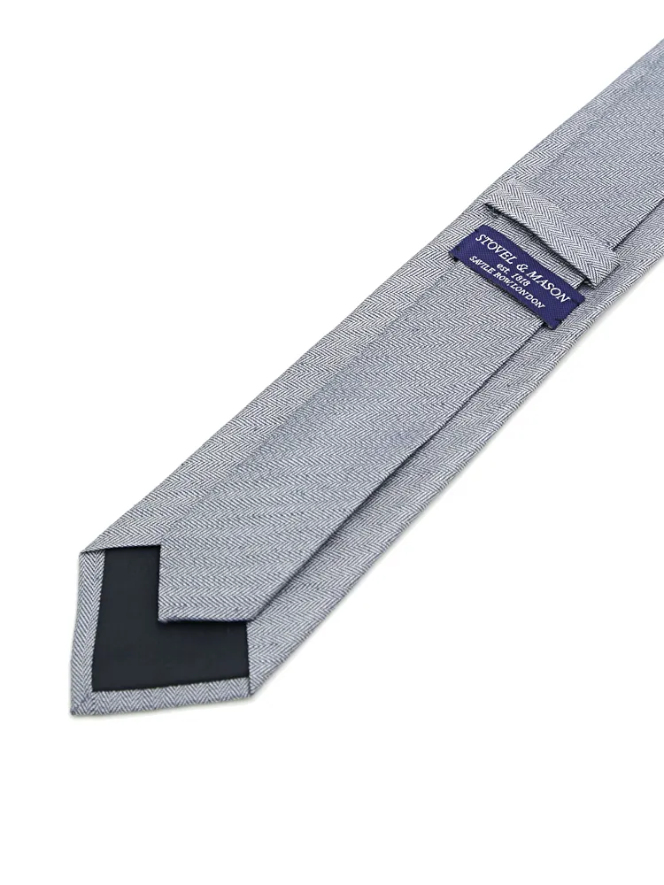 【シルクリネン】ネクタイ レギュラー ヘリンボン S&M BLUE LABEL 春夏(ネイビー)