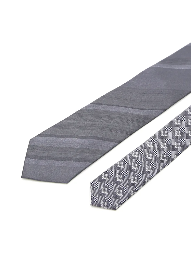【KATHARINE E HAMNETT-キャサリン・イー・ハムネット-】クレリックネクタイ ストライプ柄 シルク100% 7.5cm巾(C.グレー)