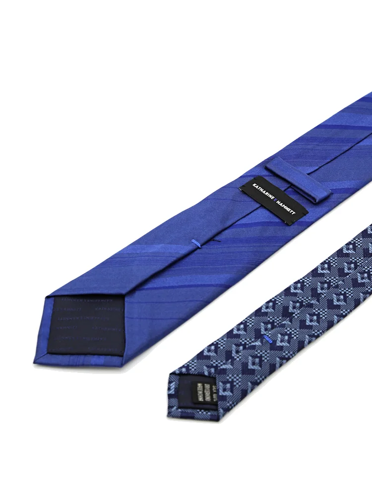 【KATHARINEEHAMNETT-キャサリン・イー・ハムネット-】レギュラーネクタイマイクロパターンシルク100%7.5cm巾