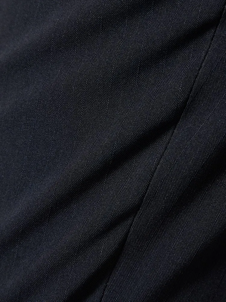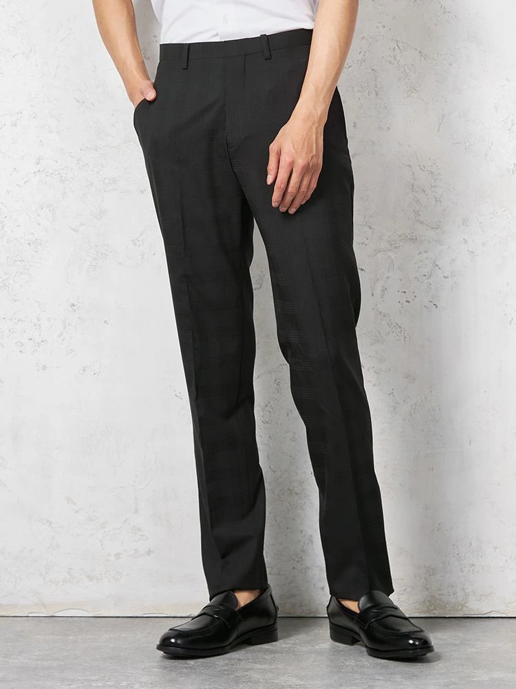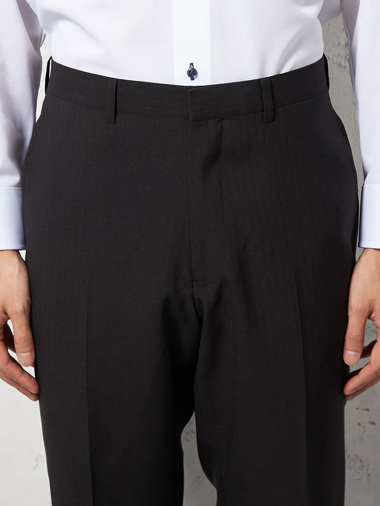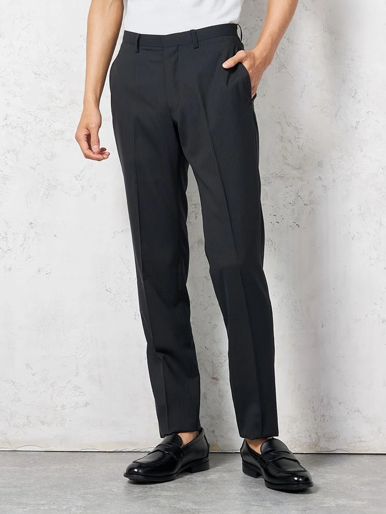 陰影で表したシャドウストライプがエレガントな、ノータック仕上げのスラックス。
