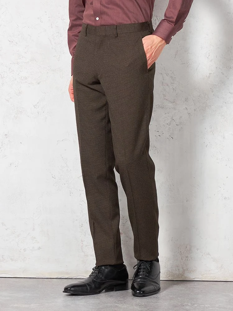 【ウォッシャブル】パンツ ノータック ウールライク スラックス 千鳥格子 フュージョンクラブ 秋冬