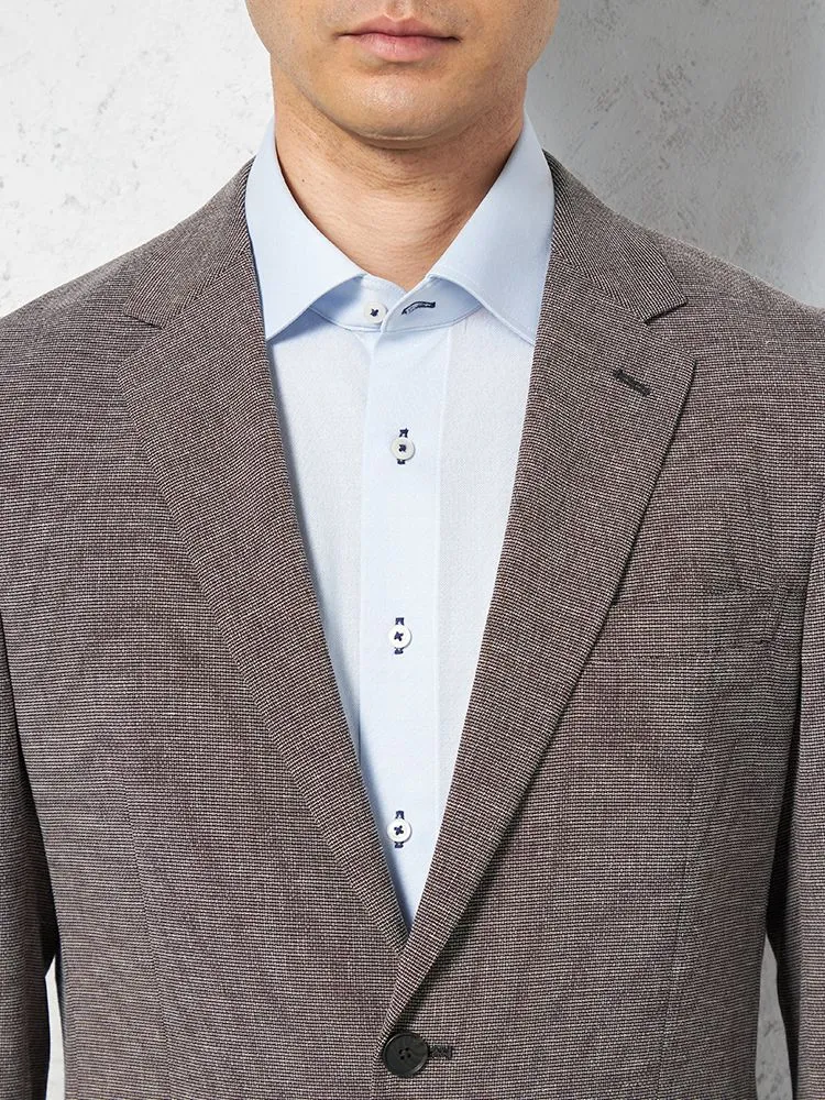 2つボタンのデザインで、クラシックなスタイルを演出。落ち着きと品のあるアイテムです。