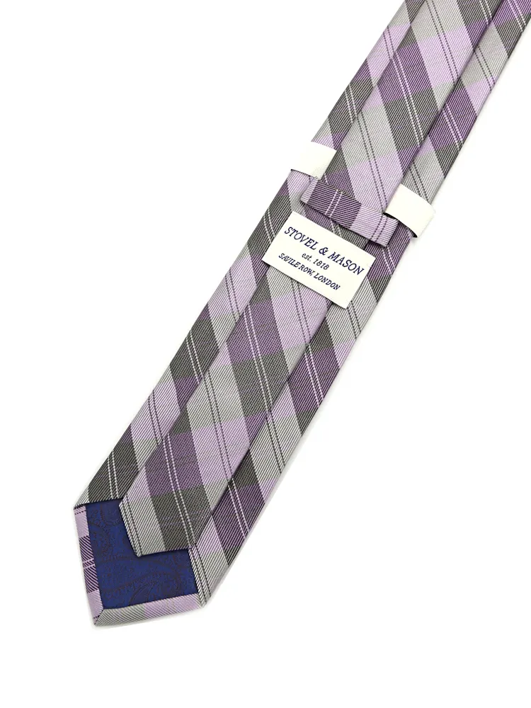 【シルク100%】ネクタイレギュラー日本製生地チェックSTOVEL&MASON