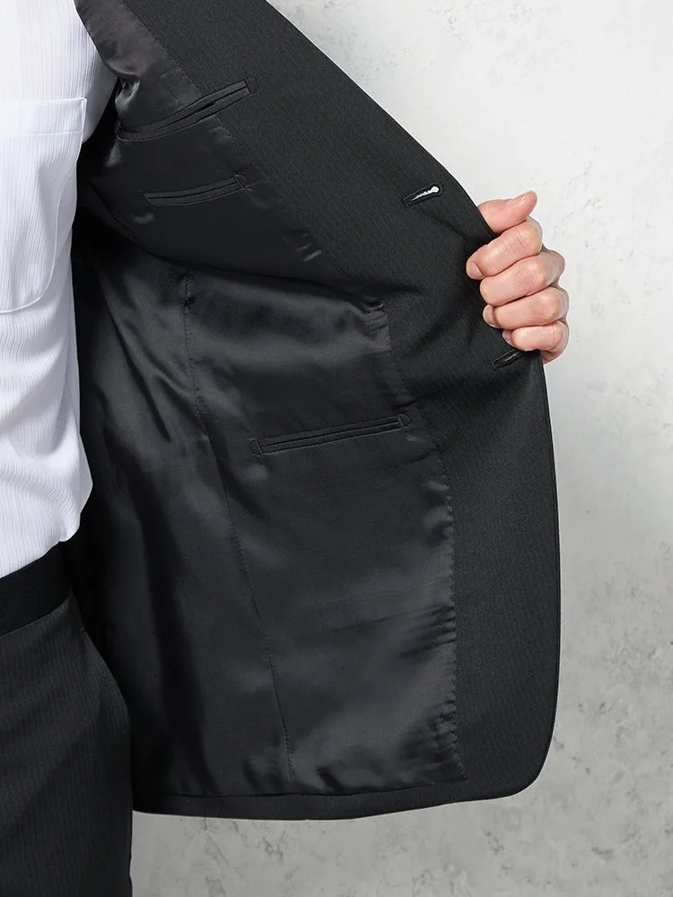 【即納】【WEB限定】スーツ2つボタンブラックシャドウストライプ上下ウォッシャブル3シーズン対応
