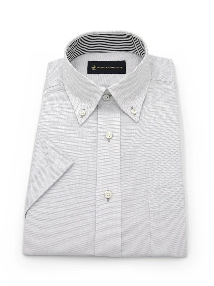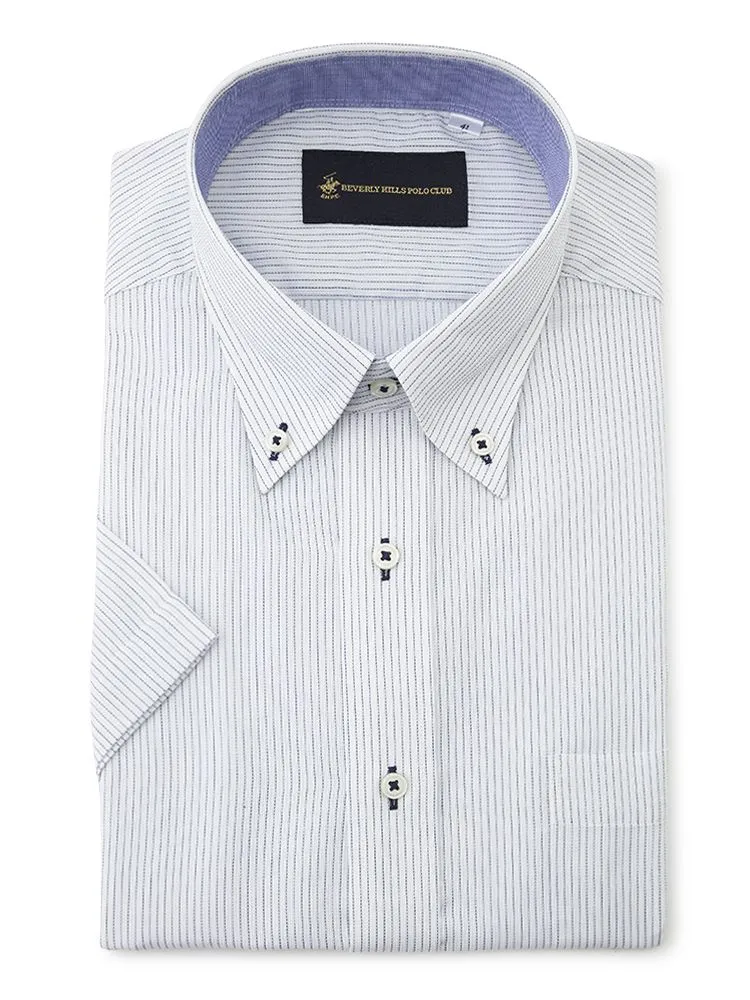 【形態安定】半袖ワイシャツボタンダウン別布ストライプビバリーヒルズポロクラブ春夏